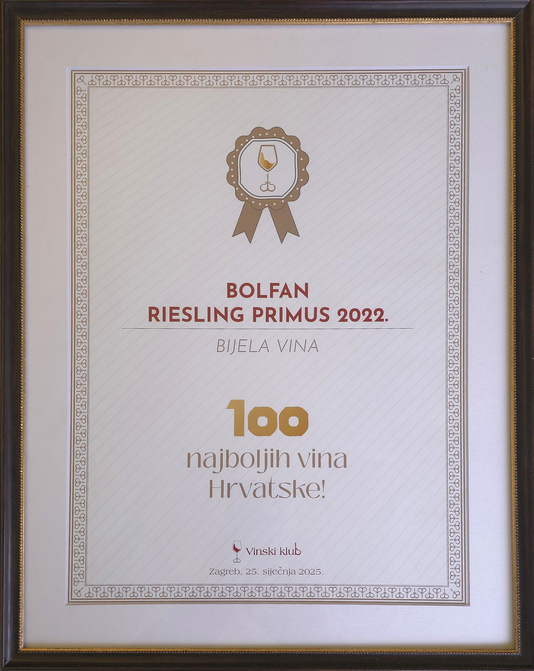 Ponosni što je naš Riesling Primus 2022 izabran u 100 najboljih vina po izboru hrvatskih sommelierki i sommeliera.